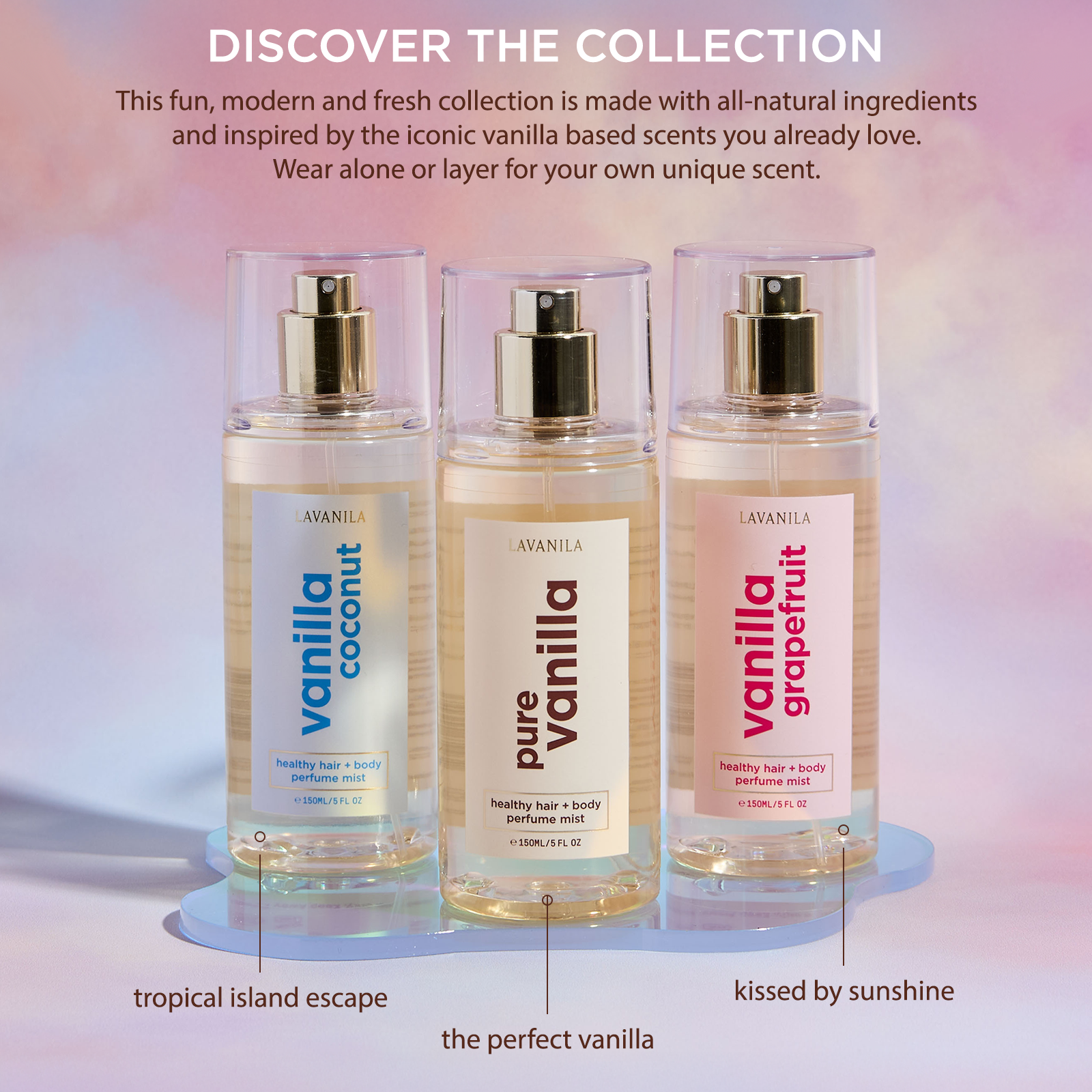 A tropical getaway in every spritz: creamy coconut mingles with warm Madagascar vanilla and the delicate bloom of Tahitian tiare flower. The result is a sweet-but-balanced scent that feels like sunshine on skin—perfect for hot summer days or adding a hint of beachy warmth to cooler months.