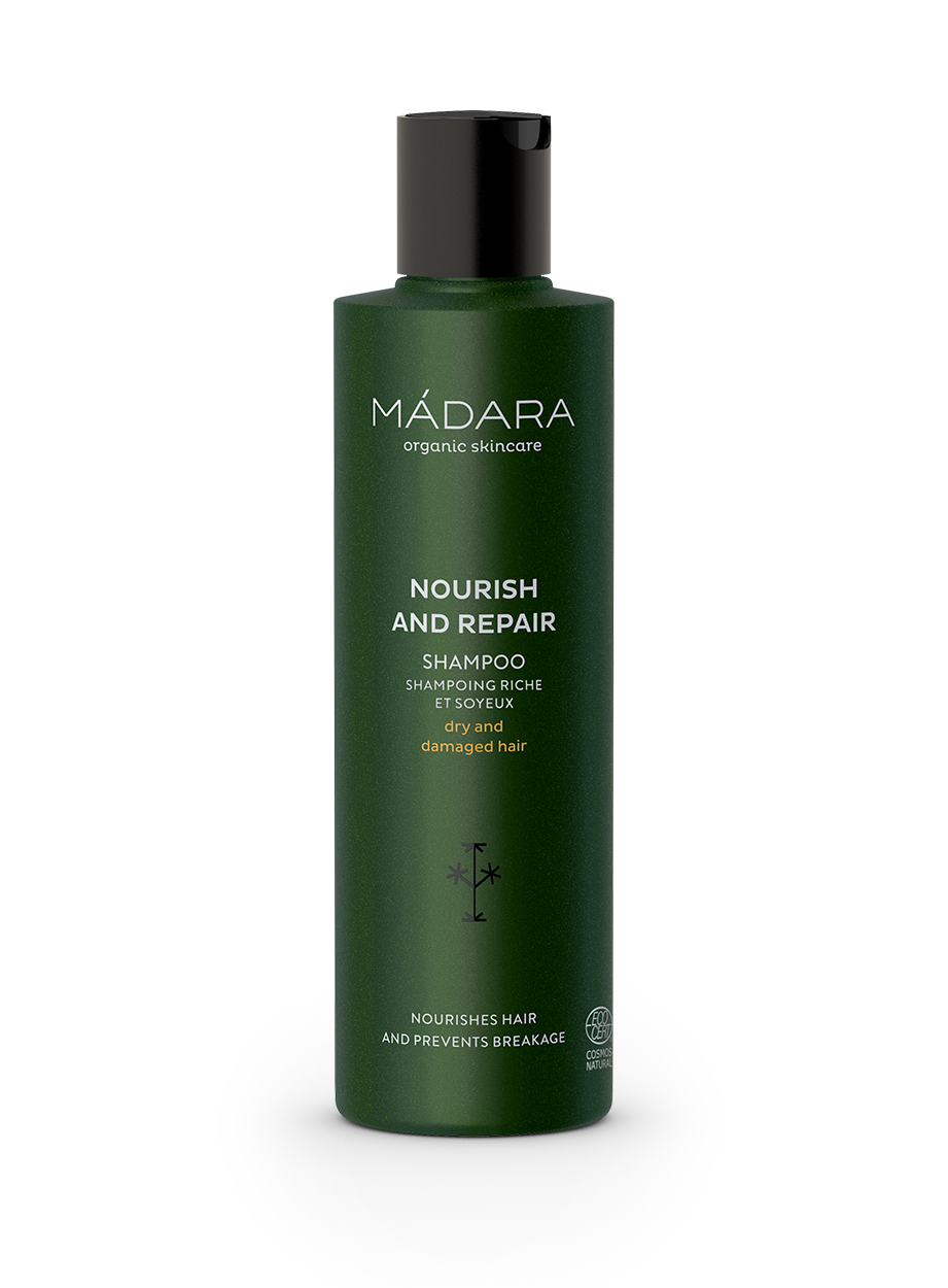 Massage into wet hair. Lather and rinse. For best results, use with MÁDARA Nourish and Repair Conditioner.